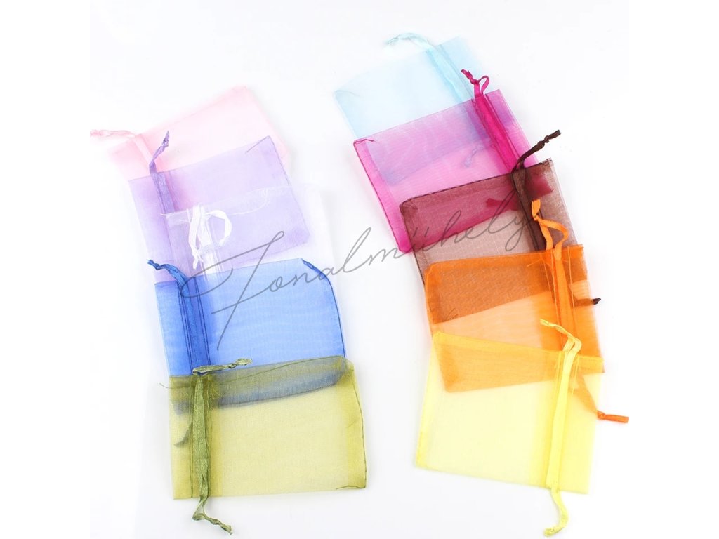 Több különböző méretű és színű organza tasak. Melyek kiválóan alkalmasak apró ajándékok átadására, illatpárna készítésre és egyéb kreatív tevékenységre.