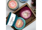 Az egyenletes színátmenetnek köszönhetően, szemet gyönyörködtető egyedi késztermékek készíthetőek belőlük kötve- és horgolva egyaránt.